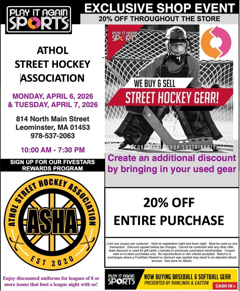 Visit Play It Again Sports on Monday, April 6th or Tuesday, April 7th and receive a discount on your purchase!